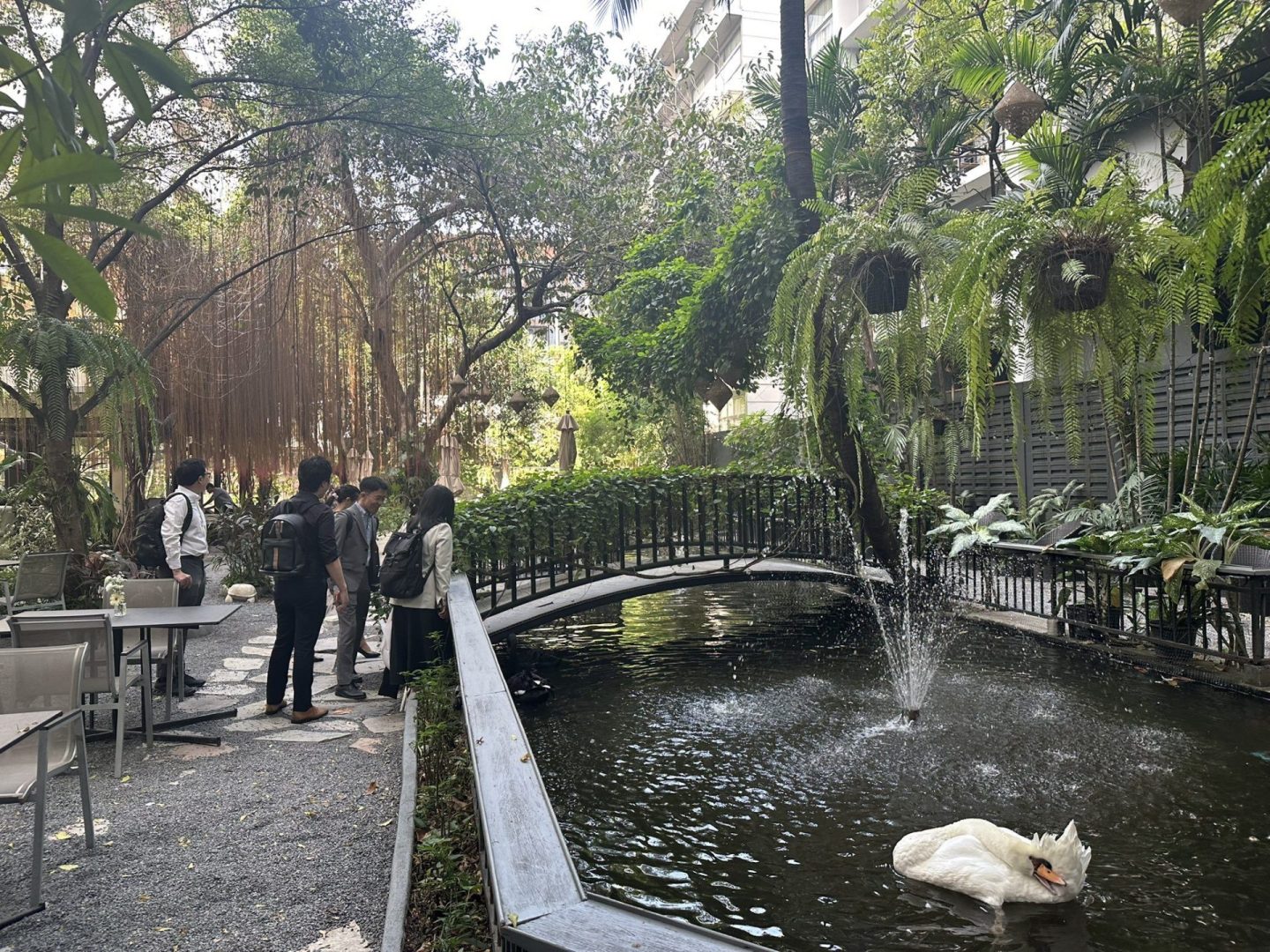 国王の元庭園を改修した美しいレストランにて、チュラボーン大学のノット先生、バーム先生とともにビジネスミーティングを実施し、今後の協力関係の方向性について具体的な議論を行いました。